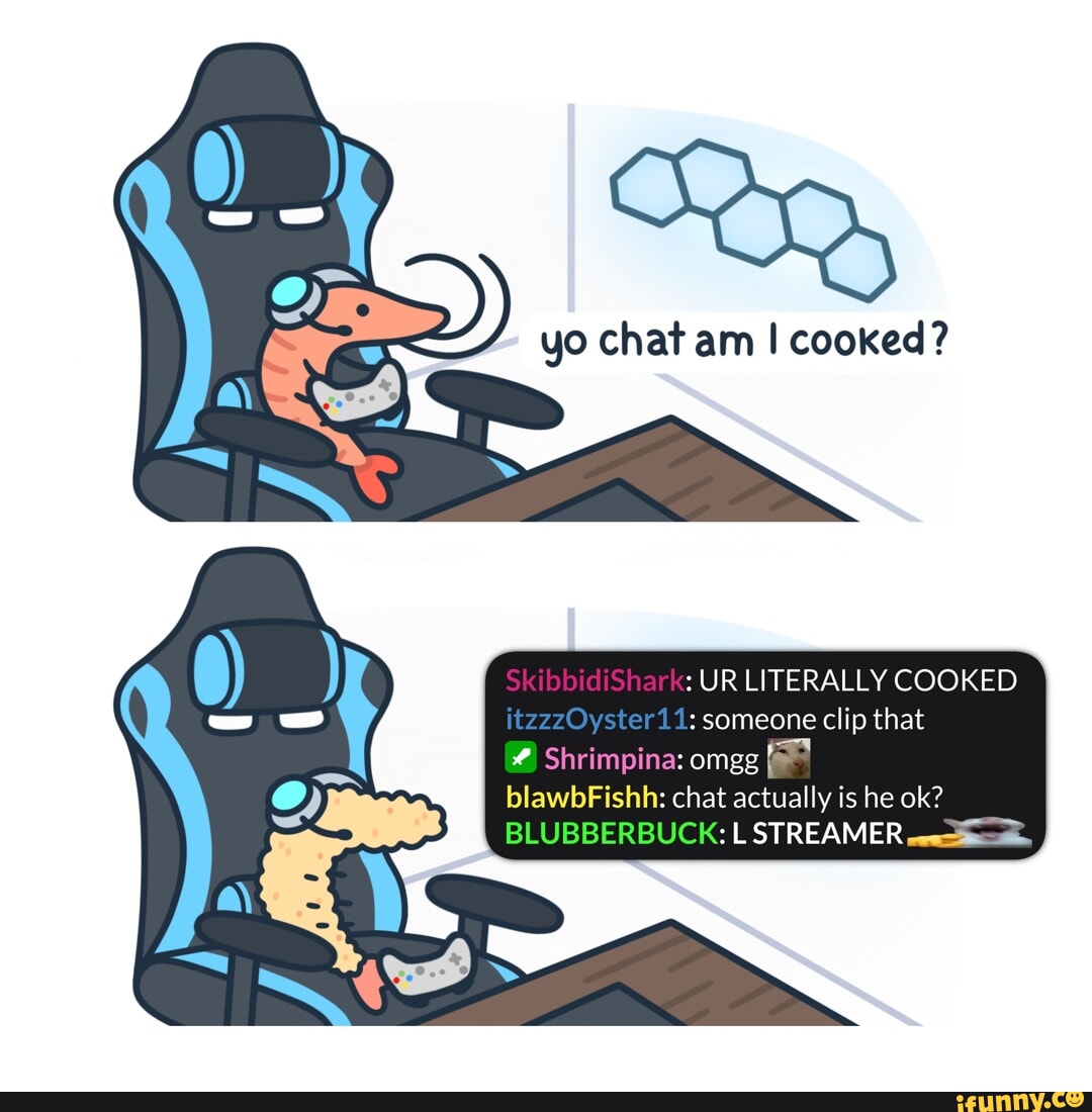 Yo chat am I cooked? UR LITERALLY COOKED itzzzOyster11: someone clip that Shrimp