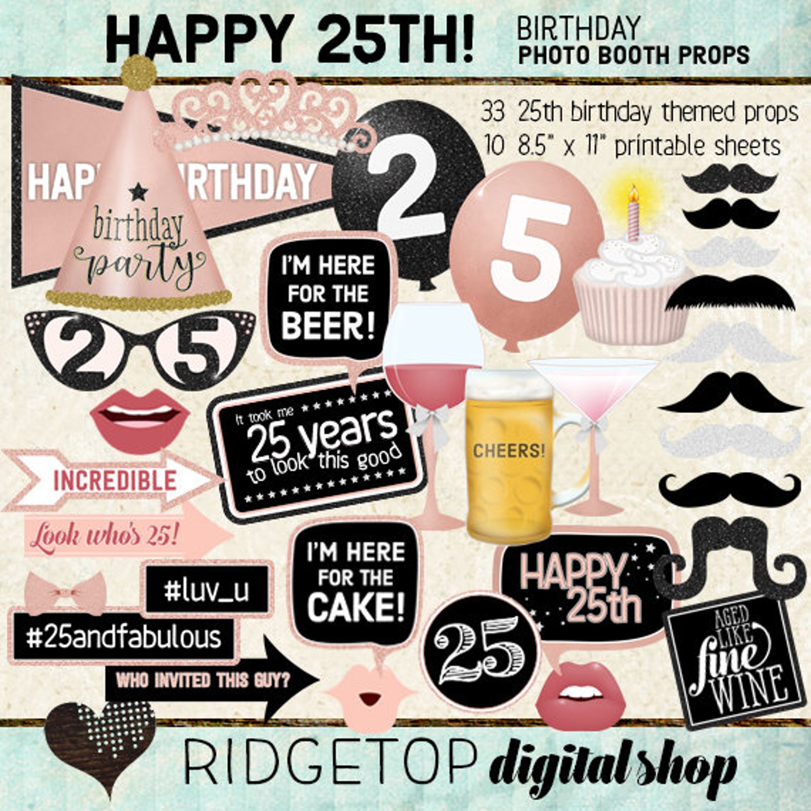 25TH BIRTHDAY Photo Booth Props 25th birthday party 25th Etsy