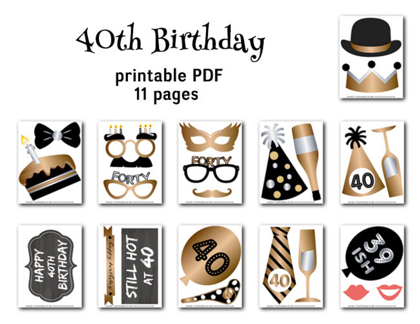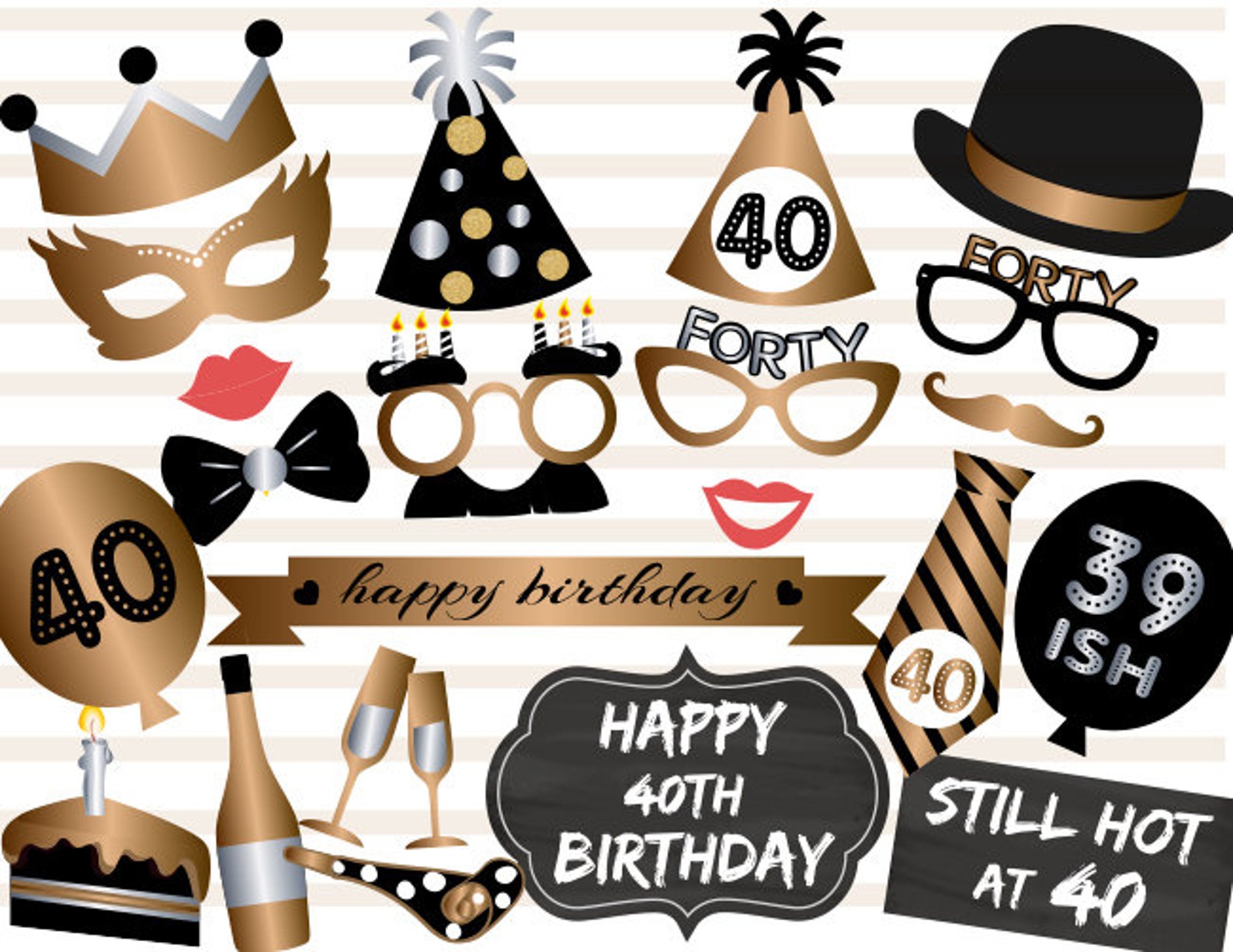 Printable 40th Birthday Party Photo Booth Props Gold Black Etsy