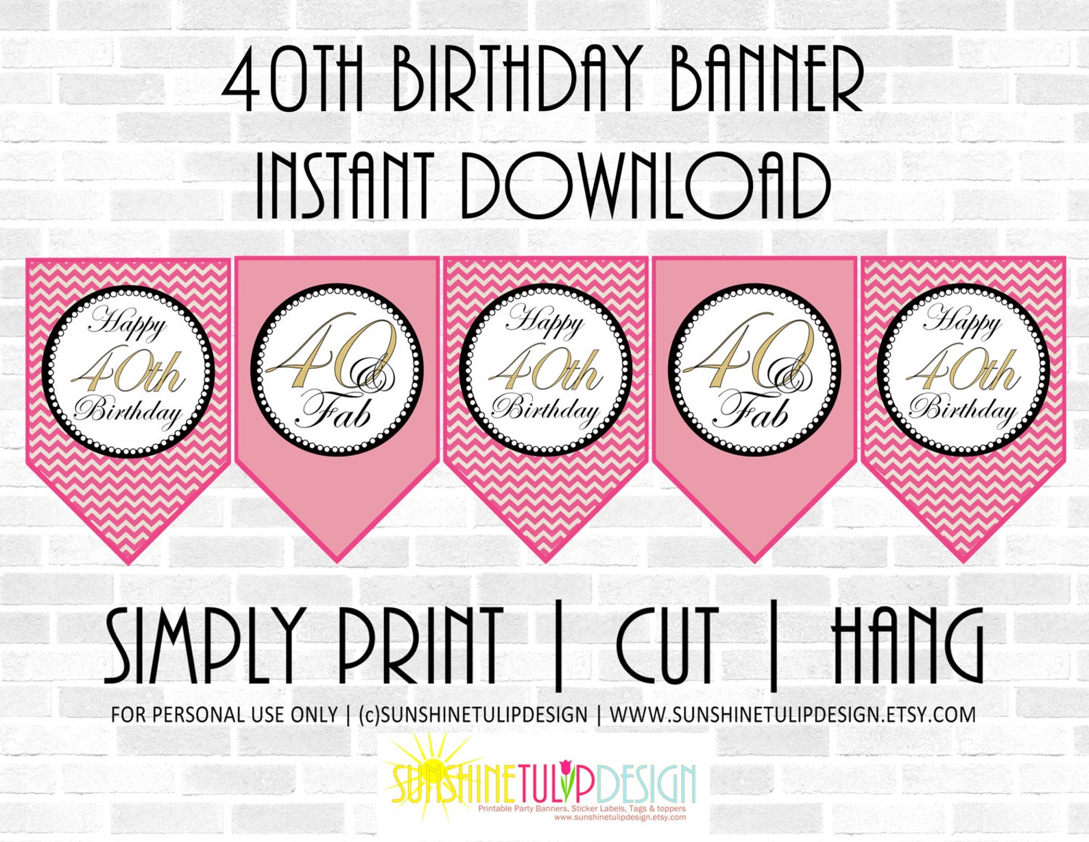 Printable 40th Birthday Banner Printable 40 and FAB Birthday Etsy