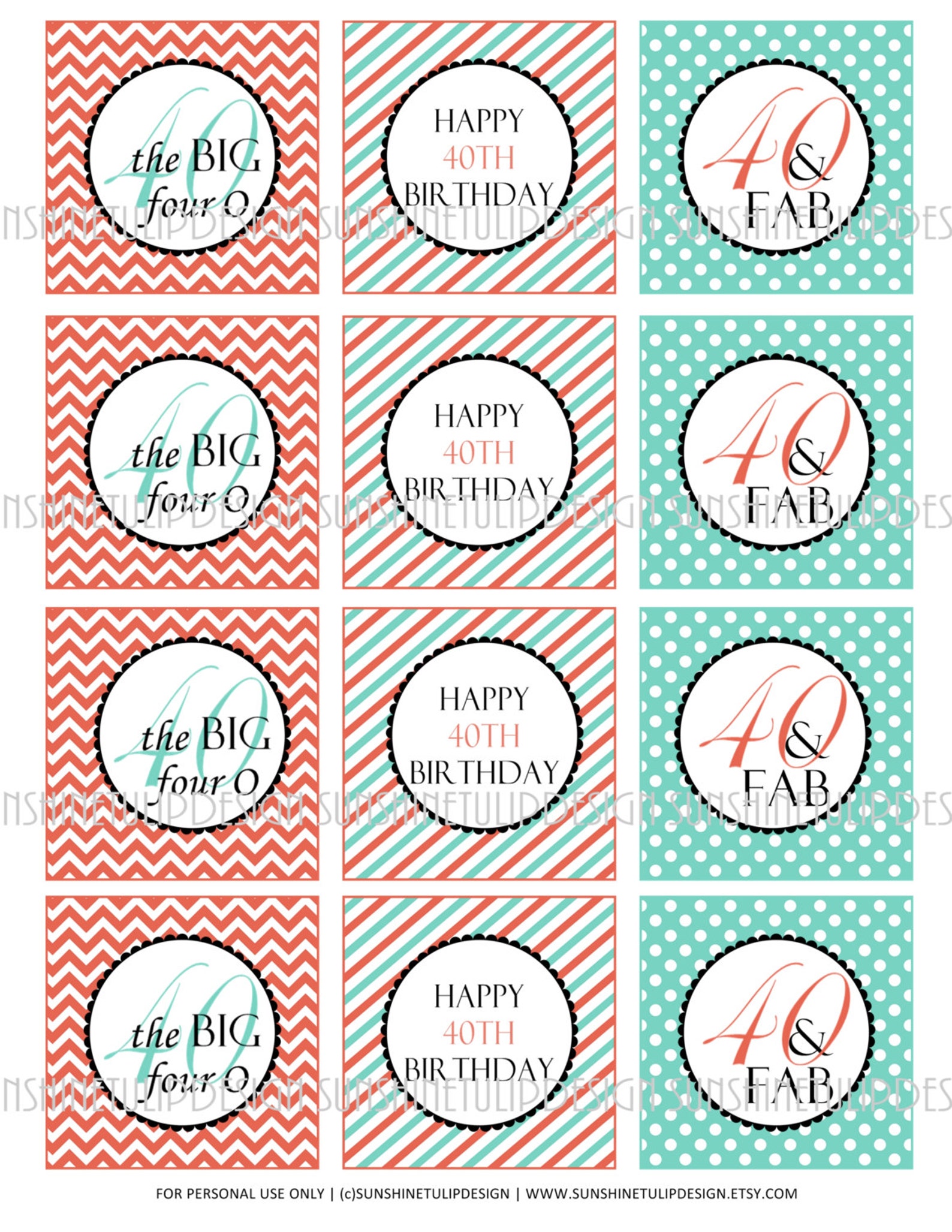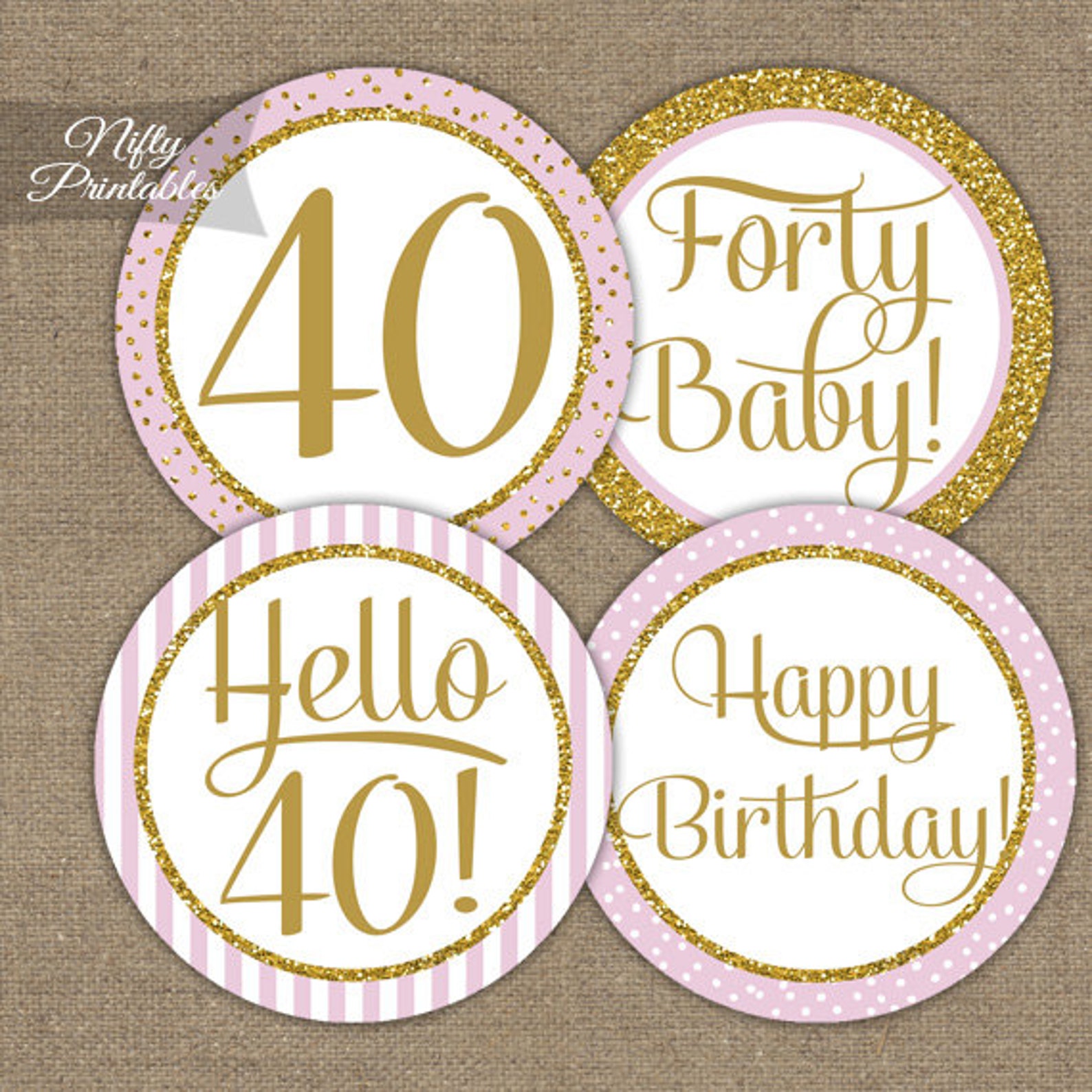 40th Birthday Printable DIY Party Tags and Cupcake Toppers by Etsy