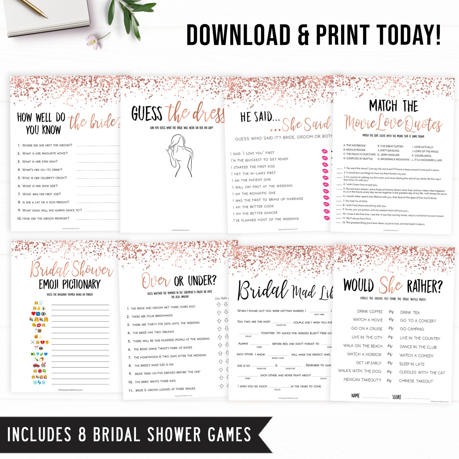 Rose Gold Bridal Shower Games Bundle Rose Gold Bridal Shower Etsy Sweden