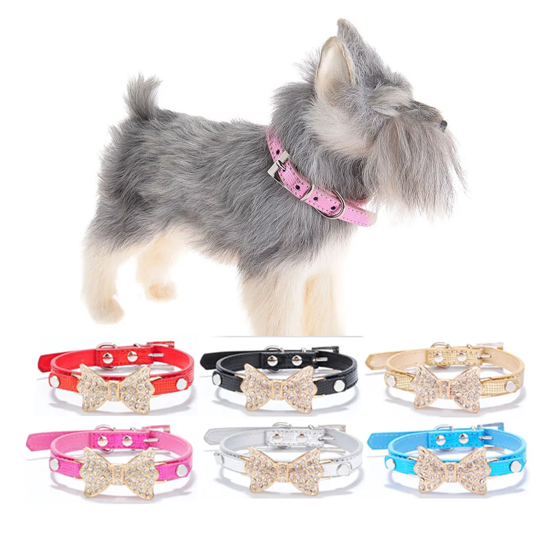 Купить Шт. 1 шт. Щенок Кошка воротники регулируемый кожаный Bling бантом котенок